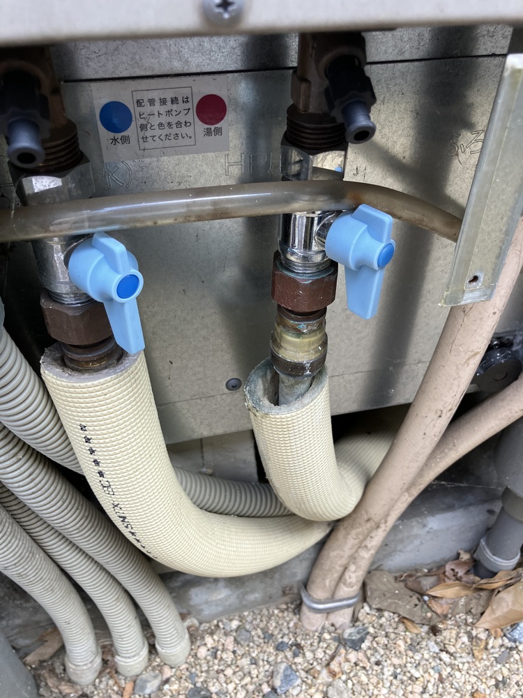 現時点では湿っている程度でしたが、漏れが激しくなると配管自体が裂けてしまい、タンクのお湯が逃げてお湯の使用ができなくなってしまいます。