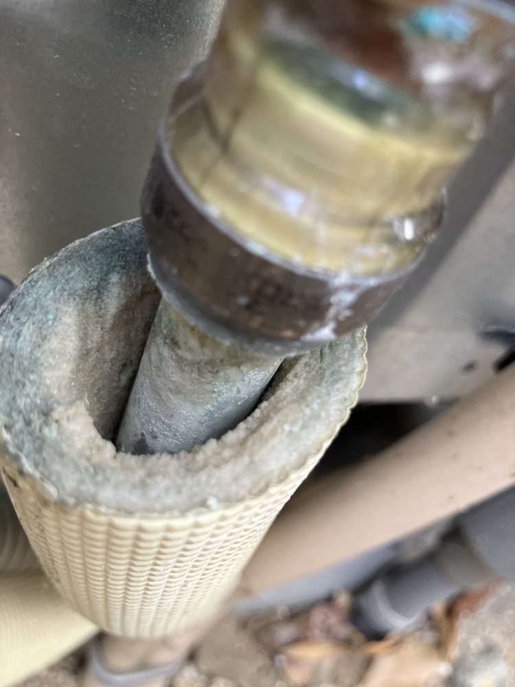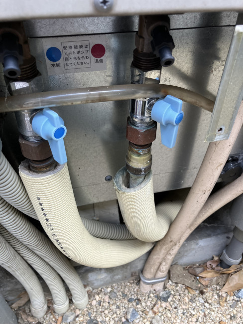 この配管は室外機とタンクとを結んでる配管です。
