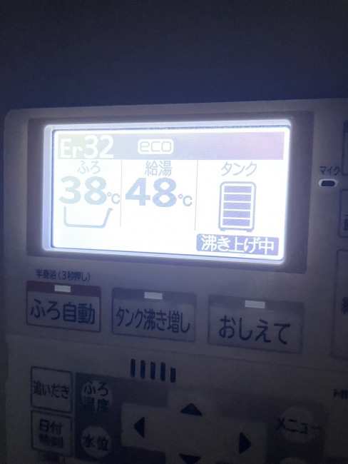 朝に台所のリモコンをチェックすると、Er32が出てタンク湯量のメモリが少なかったりする頻度が多くなり、連絡がありました。