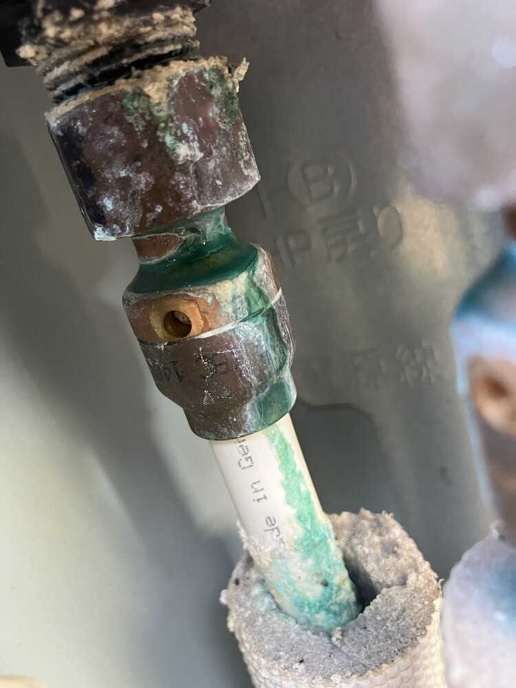 この配管からの水漏れはよく起こる修理なので、点検の際は必ず見るようにしています。