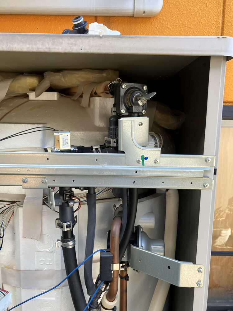 写真では見えづらいですがタンク右上あたりに給湯混合弁があります。